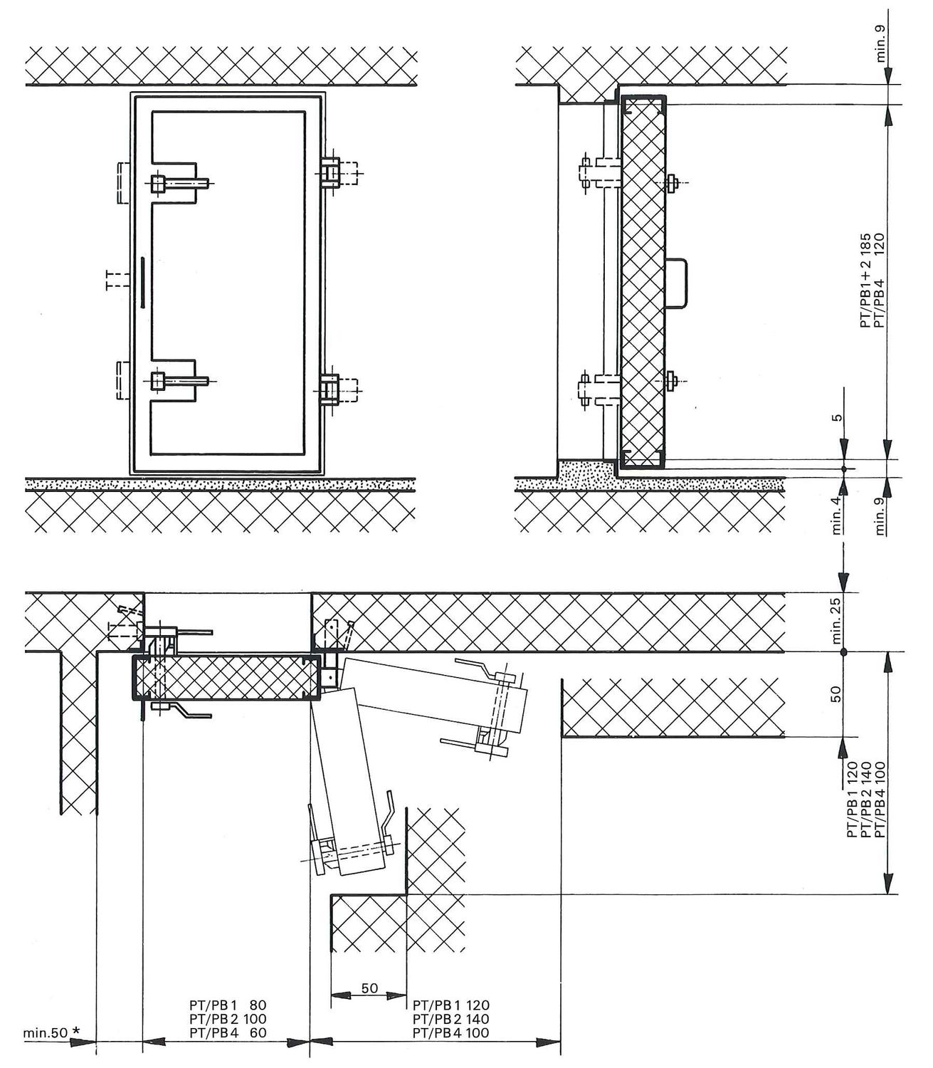 - Model PT-1 – do montażu w ścianie poprzez zalanie betonem,